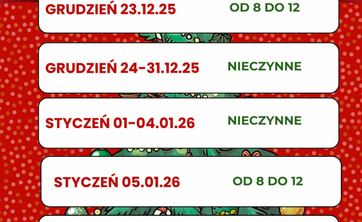 Zachęcamy do zapoznania się z godzinami przyjęć w okresie świąteczno-noworocznym. więcej