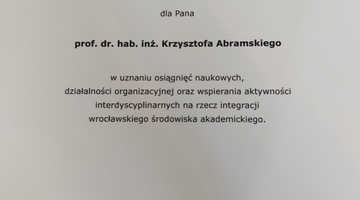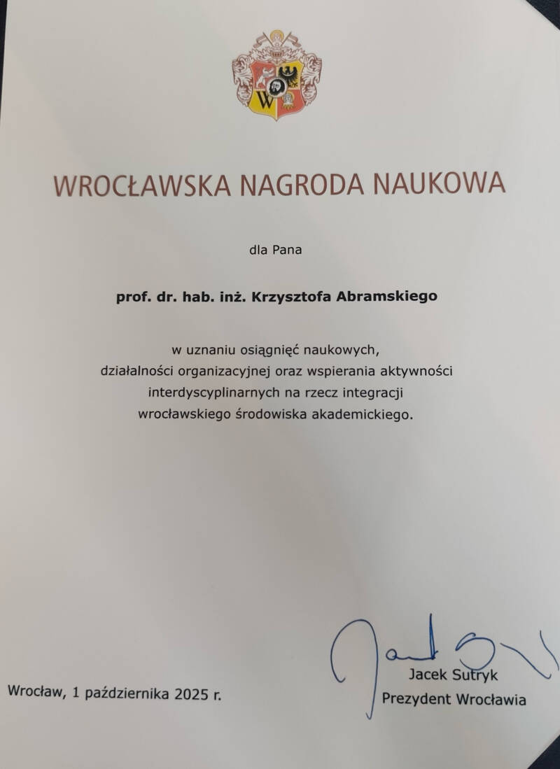Prof. Krzysztof Abramski laureatem Wrocławskiej Nagrody Naukowej