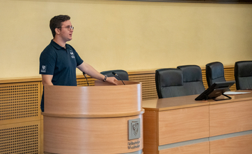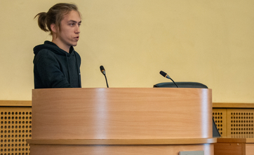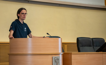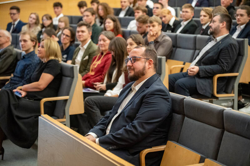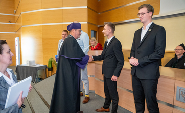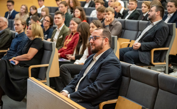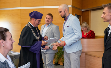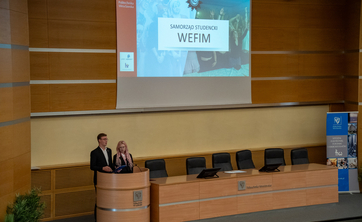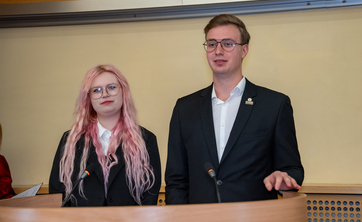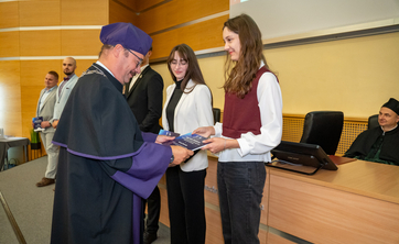 Immatrykulowani studenci otrzymali również wyrazy wsparcia i życzenia wyjątkowego czasu na uczelni od przedstawicieli Wydziałowej Rady Samorządu Studenckiego, Pani Martyny Mularczyk oraz Pana Adama Szczepaniaka.