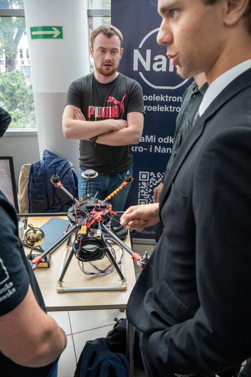 Była to inspirująca podróż po świecie nowych technologii, z podkreśleniem branży kosmicznej, która pokazała, jak wielkie możliwości stoją dziś przed młodymi naukowcami i inżynierami. Prelegent wyjaśnił jak osiągnięcia inżynierii kosmicznej wpływają na nasze życie codzienne, ale też pokazał jak wygląda codzienność inżynierów kosmicznych. Przdstawił kosmos jako swoisty poligon doświadczalny - coraz bardziej dostępny, tańszy i otwarty do tego stopnia, że możliwe jest wysyłanie własnych ładunków w przestrzeń kosmiczną. Nie pominął też zapoznania audytorium z informacją o udziale naszych studentów w misjach kosmicznych. Na naszym wydziale powstały m.in. dedykowane lab-chipy, moduły detekcji optycznej, moduły zarządzania mikroprzepływem oraz konstrukcje mechaniczne ładunku eksperymentalnego dla satelity Cubesat3U.