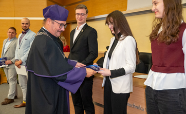 Kontynuując podziękowania dla zaangażowanych studentów Dziekan wręczył także dodatkowo wyróżnienia.