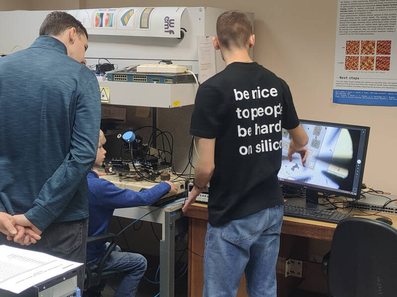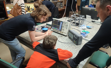 Do świata mikro- i nano- w laboratoriach przy ulicy Długiej zaprosili też zaciekawionych nauką uczestników Nocy Politechniki studenci z Koła Naukowego NaMi. Pokazali jak samodzielnie pomierzyć struktury półprzewodnikowe i w przystępny sposób wyjaśniali jak mikroskopijne elementy wpływają na działanie współczesnych urządzeń.