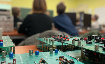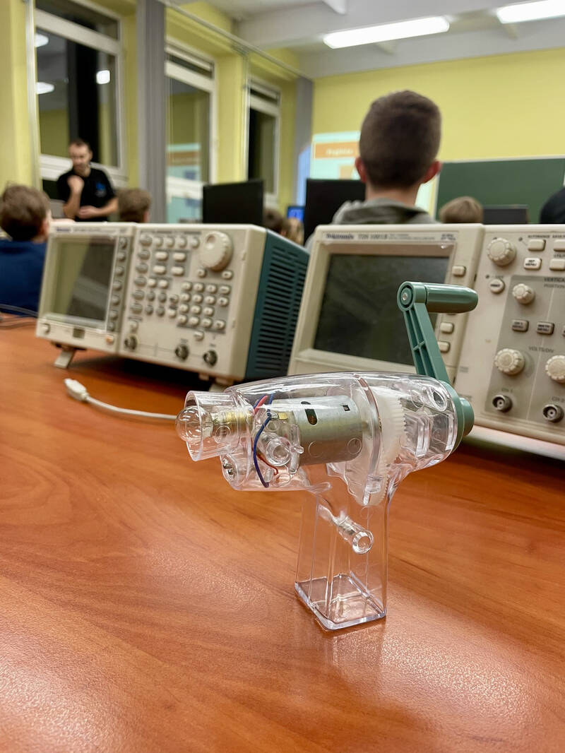 Podczas elektryzujęcej demonstracji młodzi adepci nauki poznawali nietypowe zwyczaje i drogi podążania elektronów, w międzyczasie zdobywając sprawności pogromców elektronów. Chętnie obsługiwali wszystkie urządzenia, od prostszych do generowania prądu, aż po bardziej skomplikowaną aparaturę pomiarową.