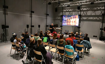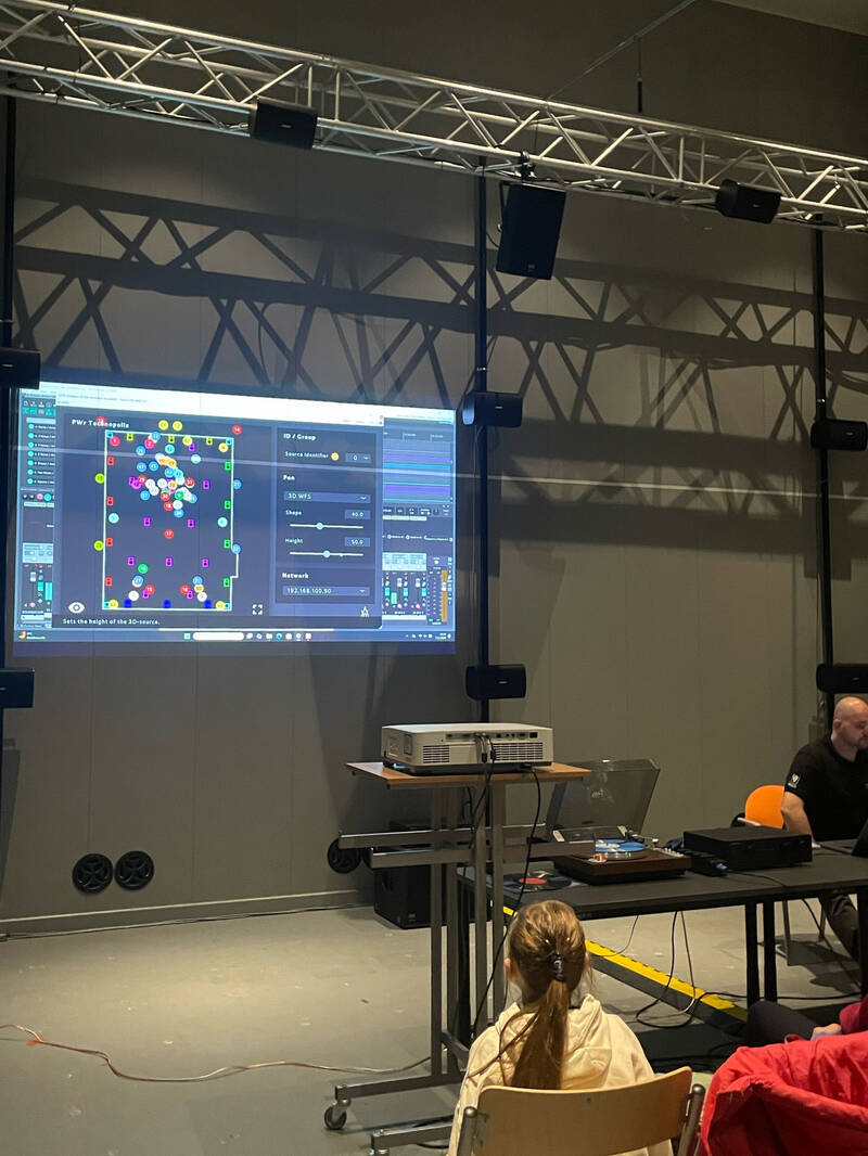 Warsztaty wzbogacone o pokazy multimedialne nie pozostawiły nikogo obojętnym na to jak tworzy się iluzję przestrzenną za pomocą dźwięku i nowych technologii.