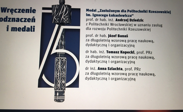 Trzeciego października br., podczas inauguracji roku akademickiego 2025/26 w Politechnice Rzeszowskiej (już 75-tej w historii tej uczelni) prof. Andrzej Dziedzic, aktualnie przewodniczący Rady Dyscypliny Naukowej Automatyka, Elektronika, Elektrotechnika i Technologie Kosmiczne oraz kierownik Katedry Mikrosystemów, a w przeszłości dziekan Wydziału Elektroniki Mikrosystemów i Fotoniki oraz prorektor ds. nauczania Politechniki Wrocławskiej, został wyróżniony medalem „Zasłużonym dla Politechniki Rzeszowskiej im. Ignacego Łukasiewicza”.